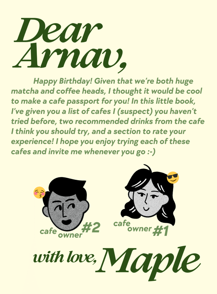 Matcha Cafe Passport to help my partner and I try, explore, and rate Matcha spots around the Bay Area!